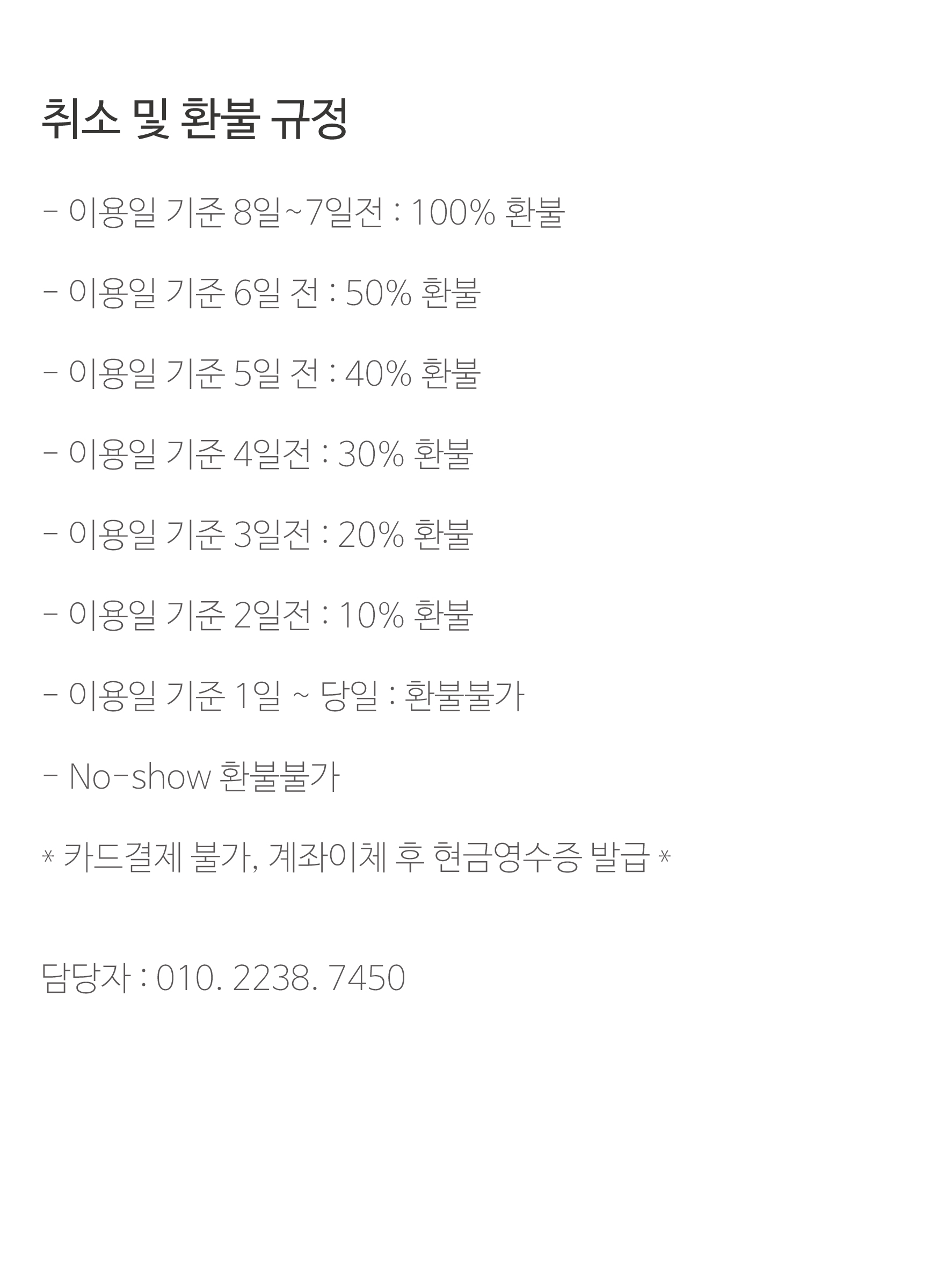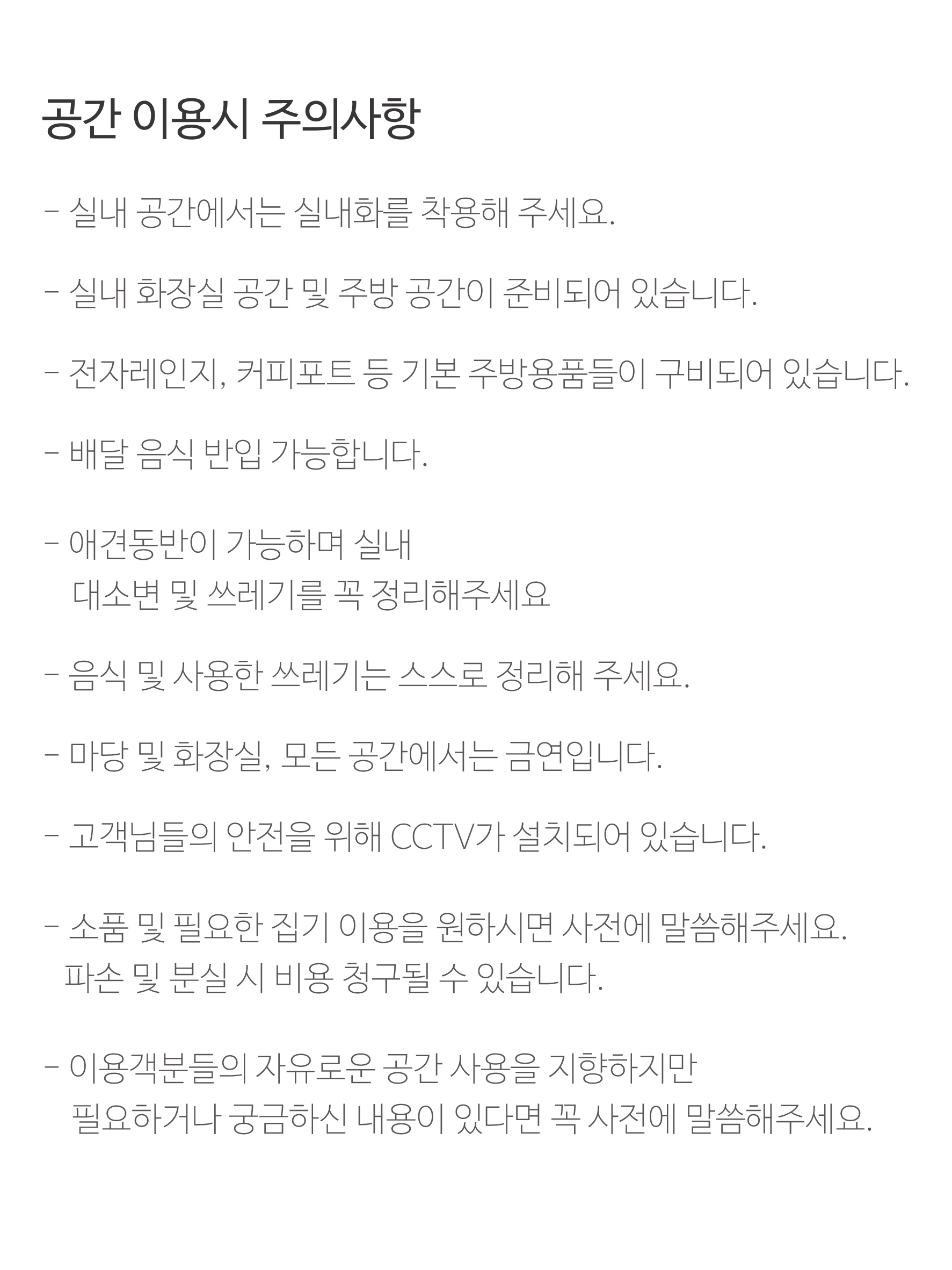 공간 이용시 주의사항 및 취소, 환불 규정